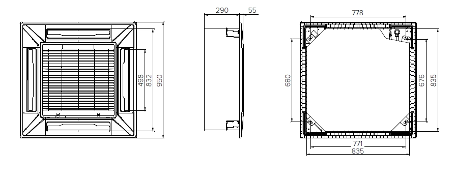 | 单位尺寸 | 毫米 | 835x835x240 | 835x835x280 | 835x835x280 | 835x835x280 |